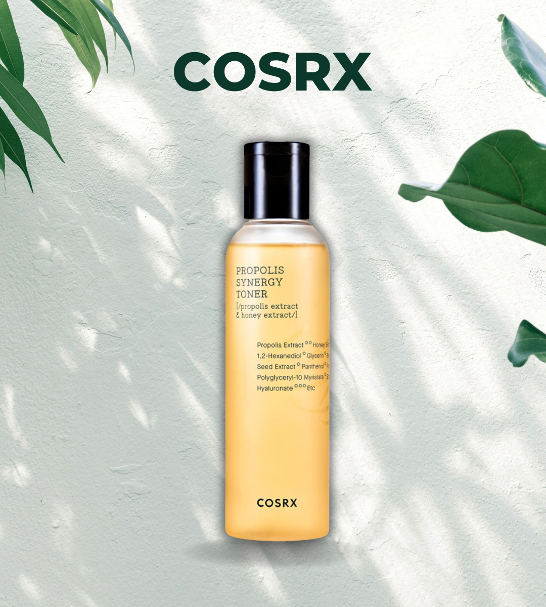 - A toner that contains 72.6% of Black bee Propolis extract and 10% Honey extract which will make your skin glowy and smooth.
